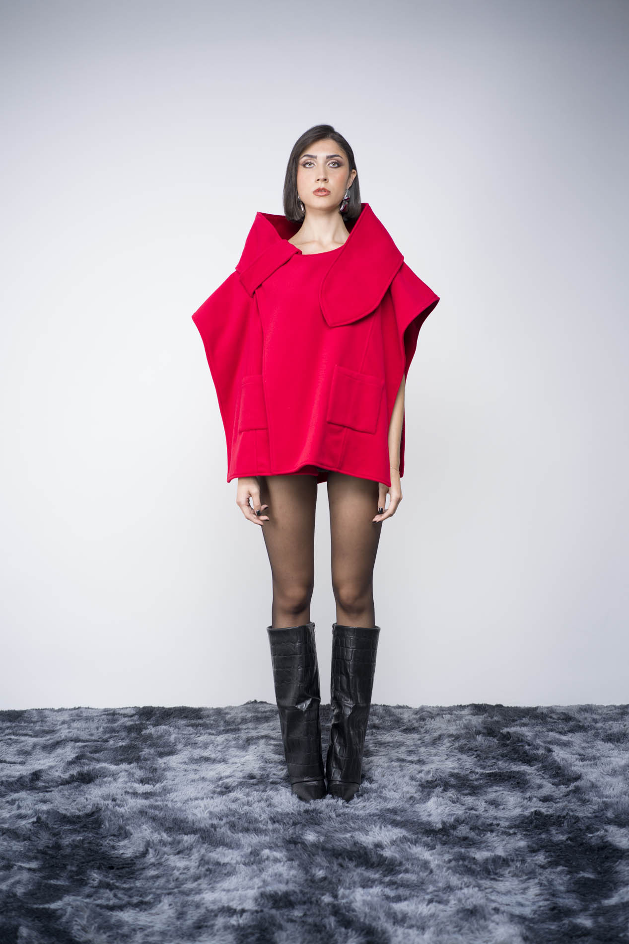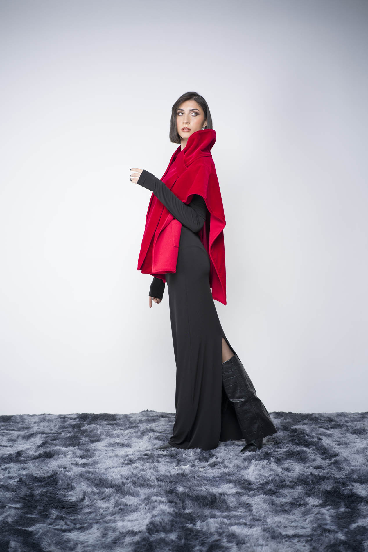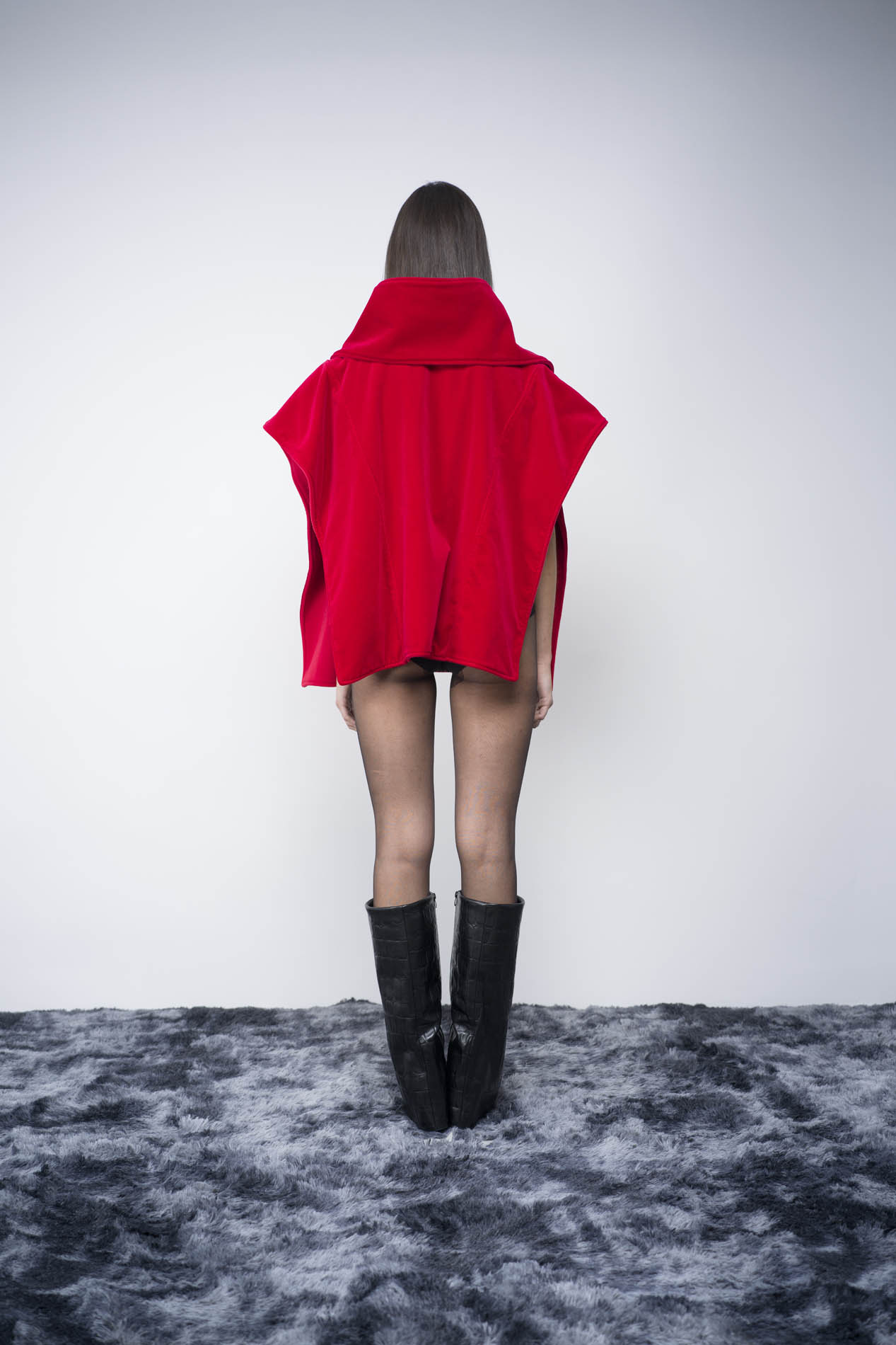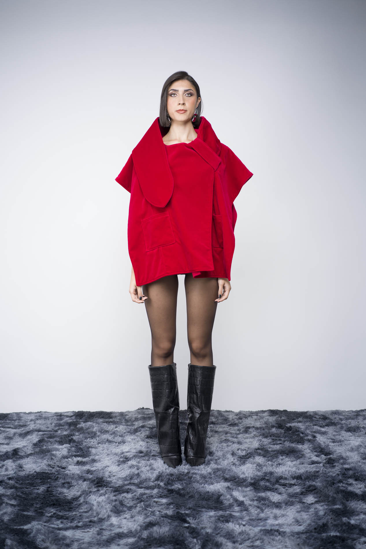 Cappa doubleface con dettaglio sciarpa in velluto e velour rosso